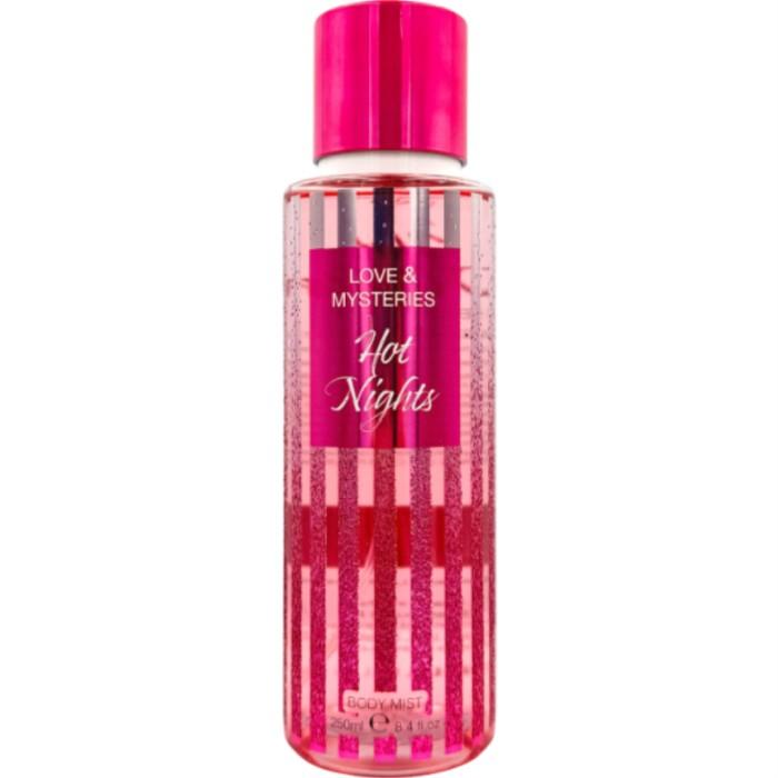 Love & Mysteries Hot Nights Body Mist är en lätt spray för kroppen, med en förförisk doft som kombinerar saftigt plommon & krossad fresia. Misten med den blommiga och fruktiga doften ger en långvarig doft, och passar för daglig användning eller att använda vid speciella tillfällen.